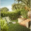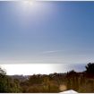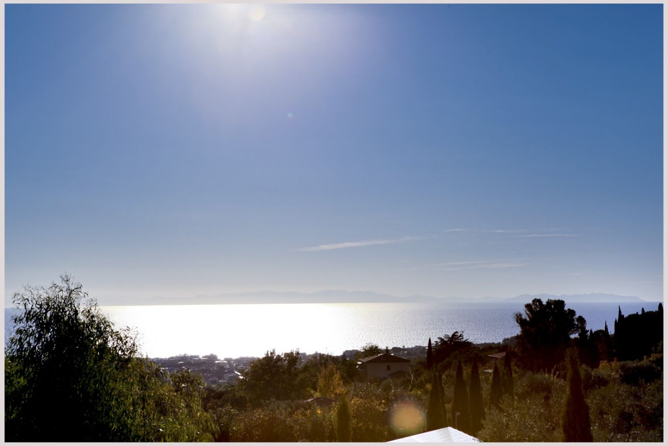 Vista dal giardino privato: colline boscose, oliveto, scorcio di mare.