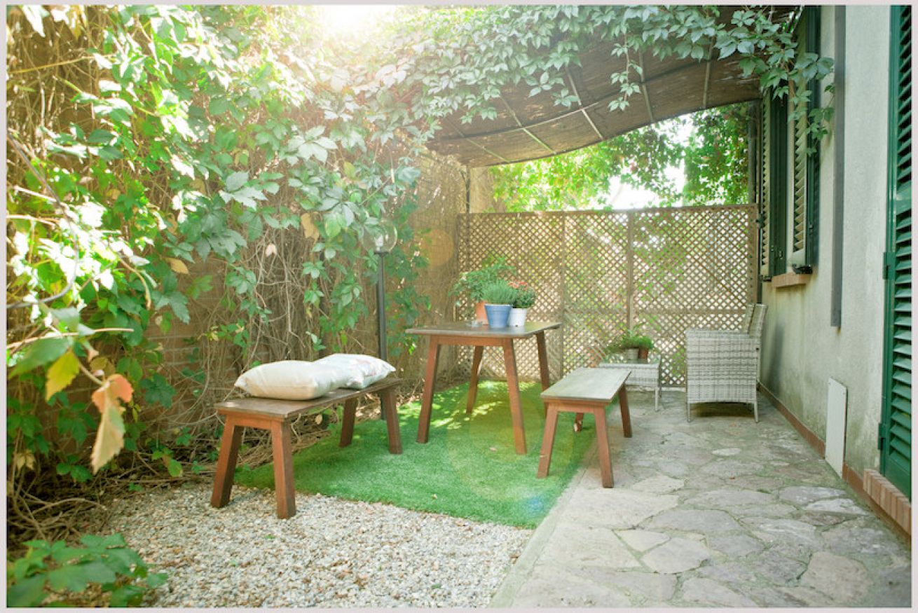 Spazio esterno privato, non ha vista su mare o colline ma garantisce massima privacy. Ingresso indipendente.