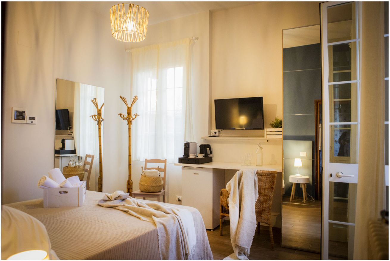 Camera matrimoniale (o 2 letti singoli) di 14mq al piano terra, kit tè e caffè, frigorifero con piccolo freezer, scrivania.