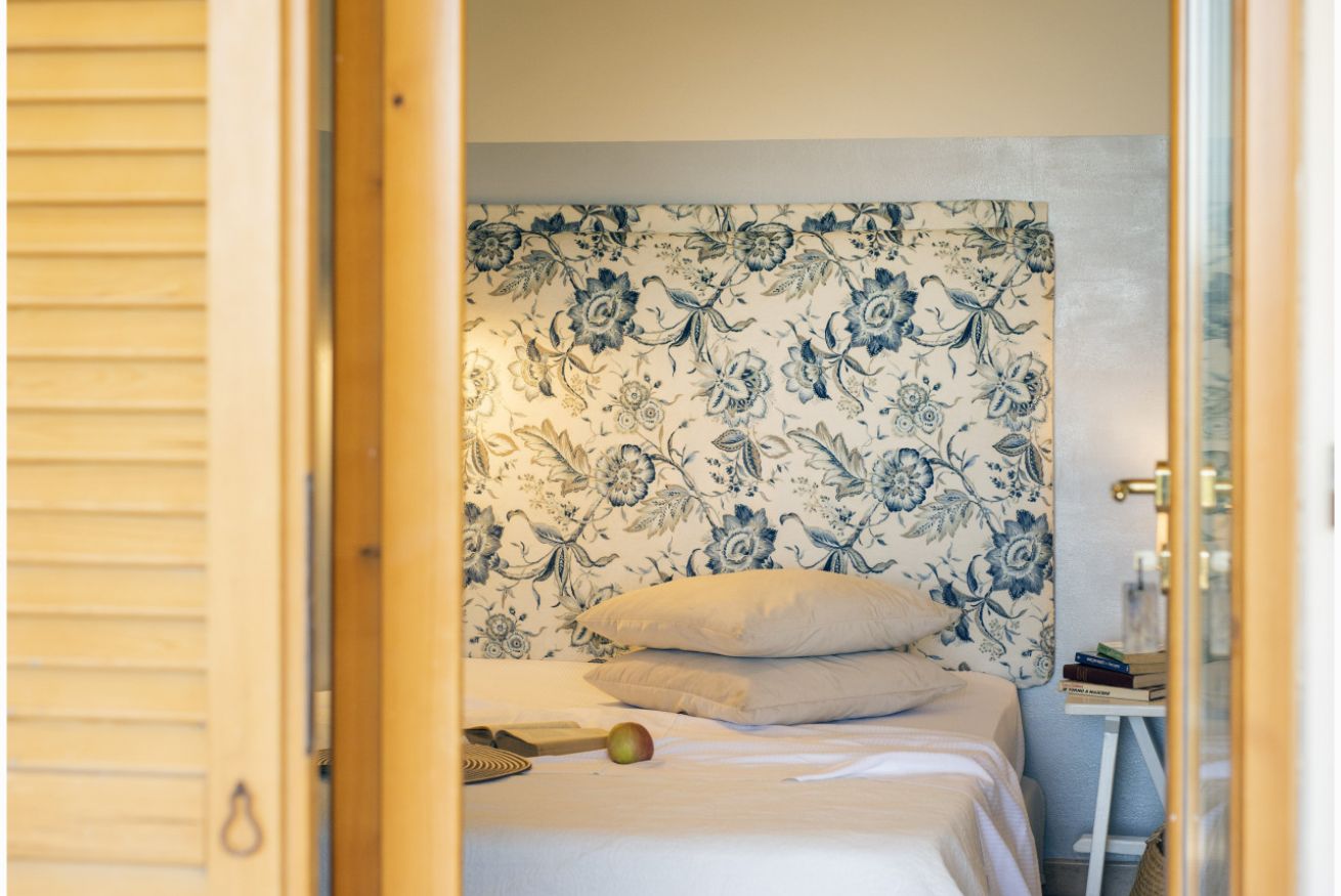Camera matrimoniale di 10mq con letto 140×190 al piano terra rialzato (raggiungibile con scalinata).