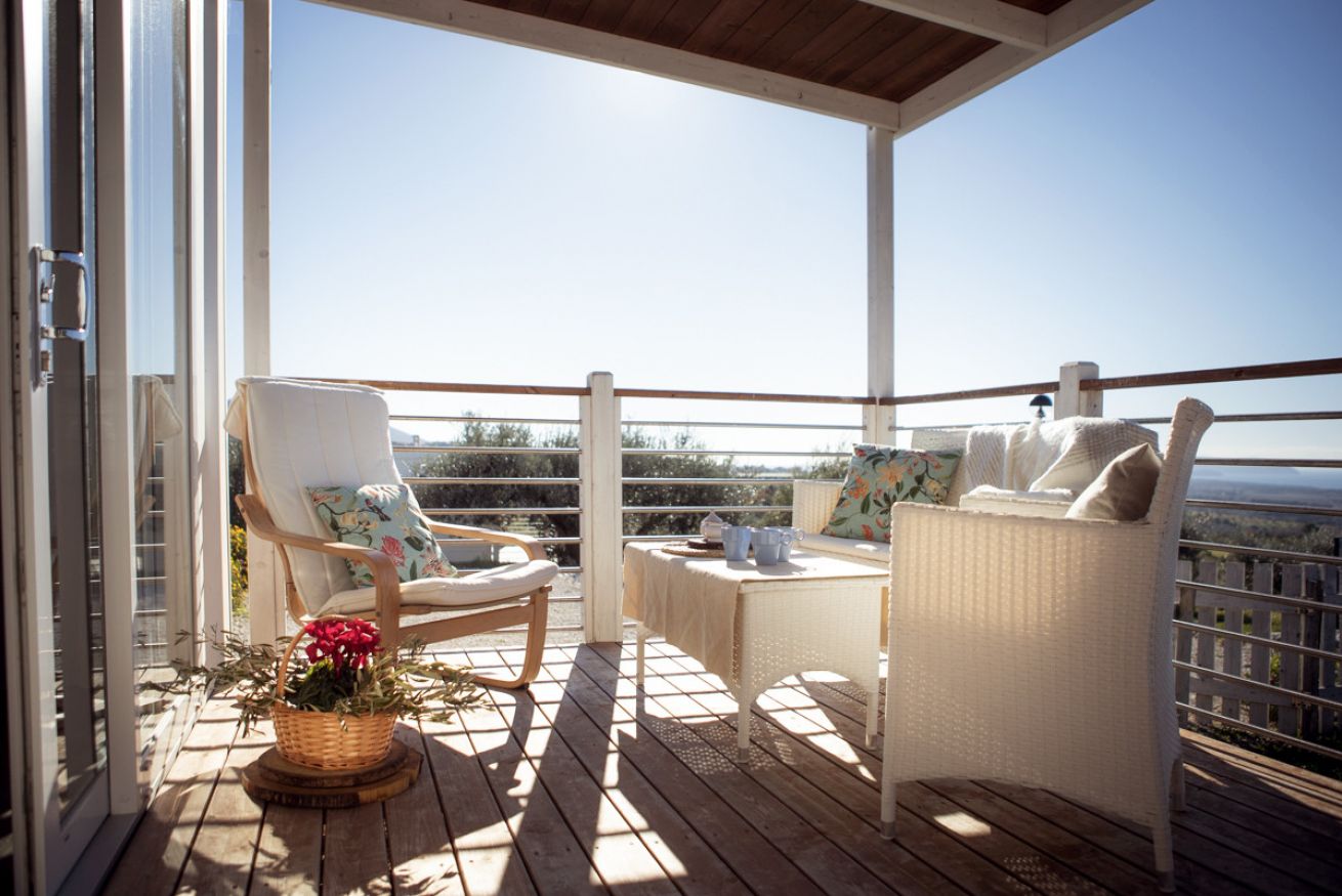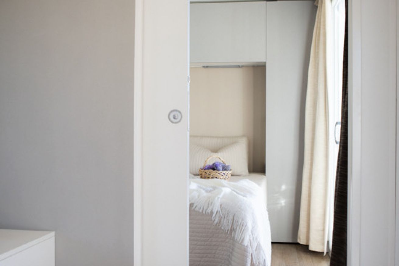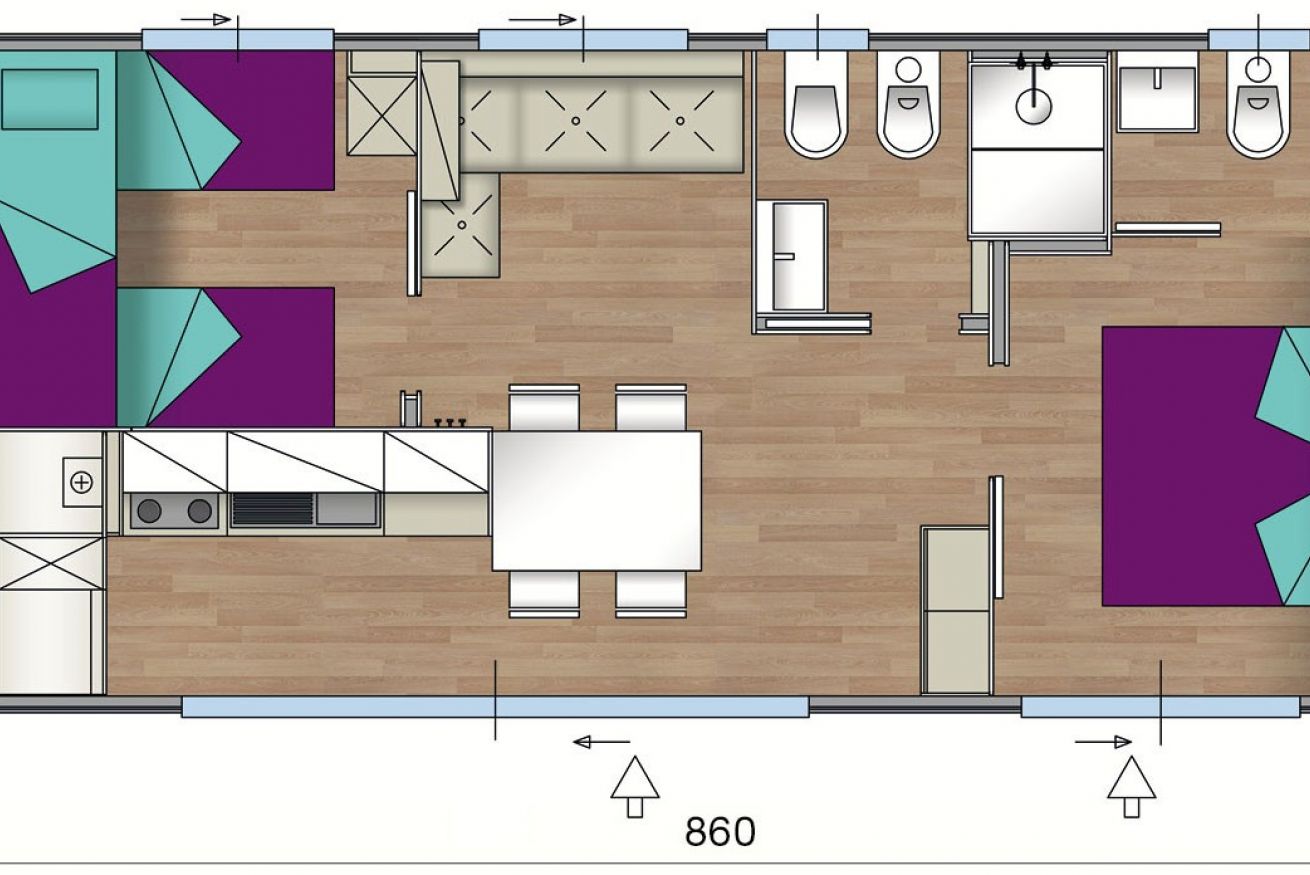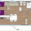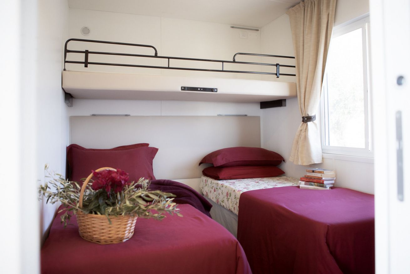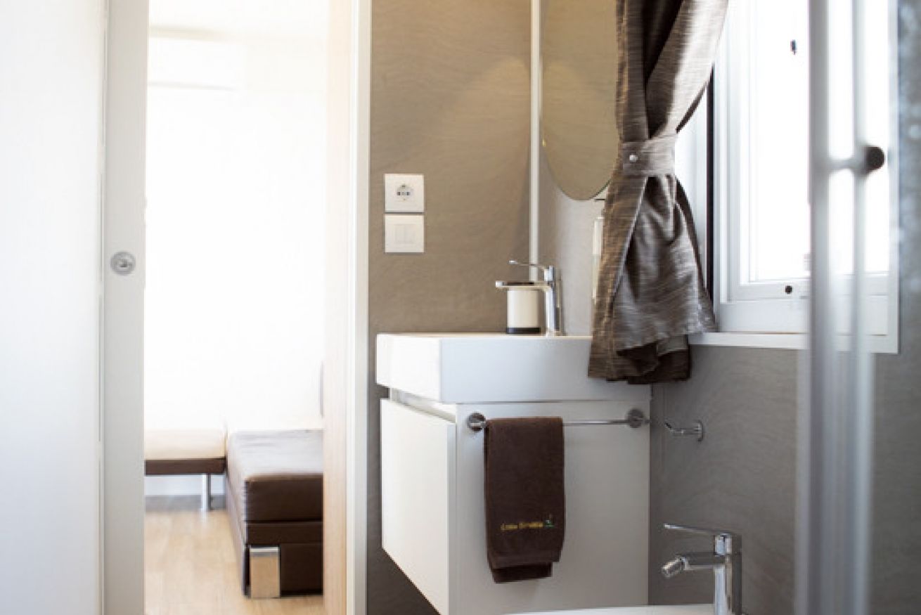 Mobile home vista mare per 2/5 persone a piano terra con area esterna privata recintata, ingresso indipendente. Due camere da letto: una camera matrimoniale ed una tripla, due bagni con box doccia, cucina soggiorno. Giardinetto recintato con pergolato e tavolo.