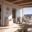 Vista dall’esterno: colline boscose e mare.